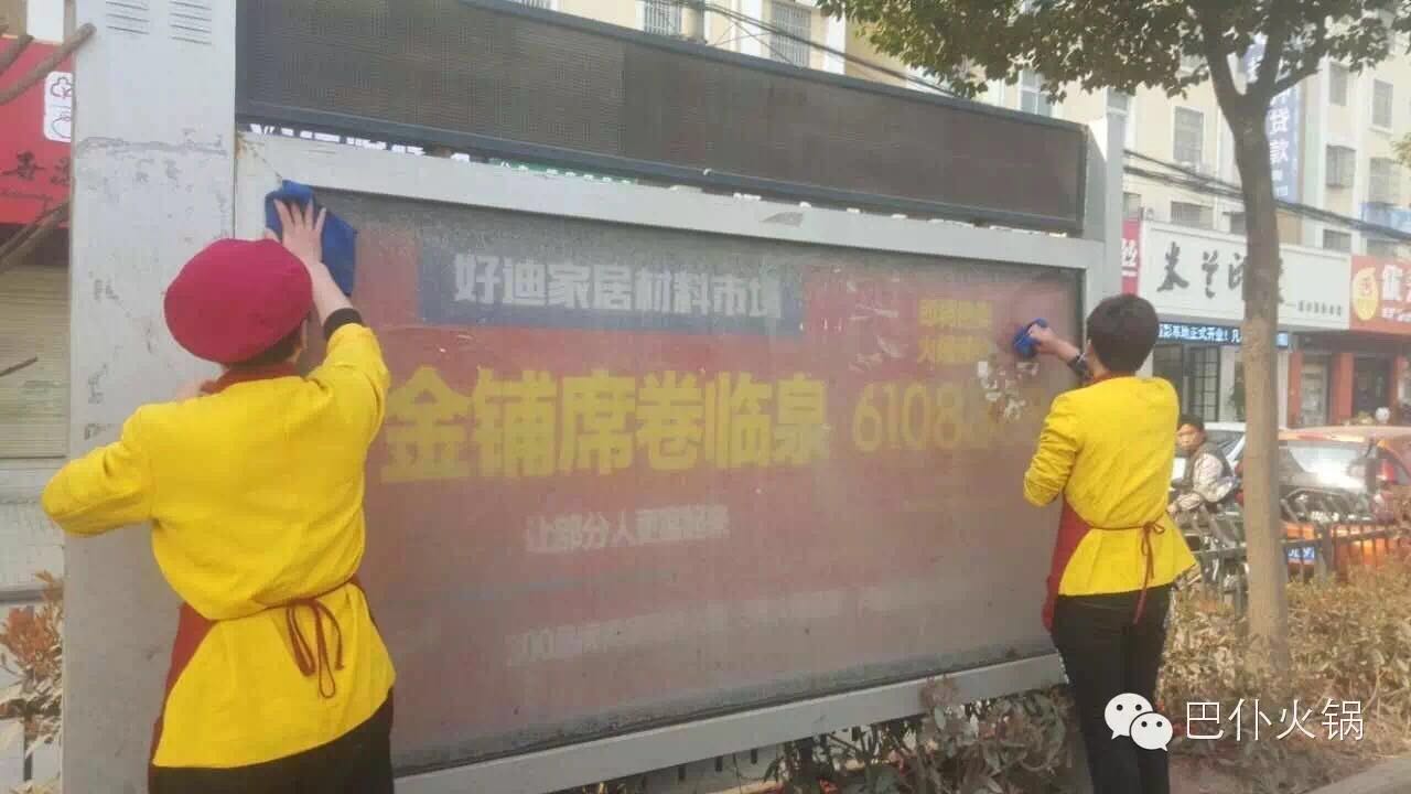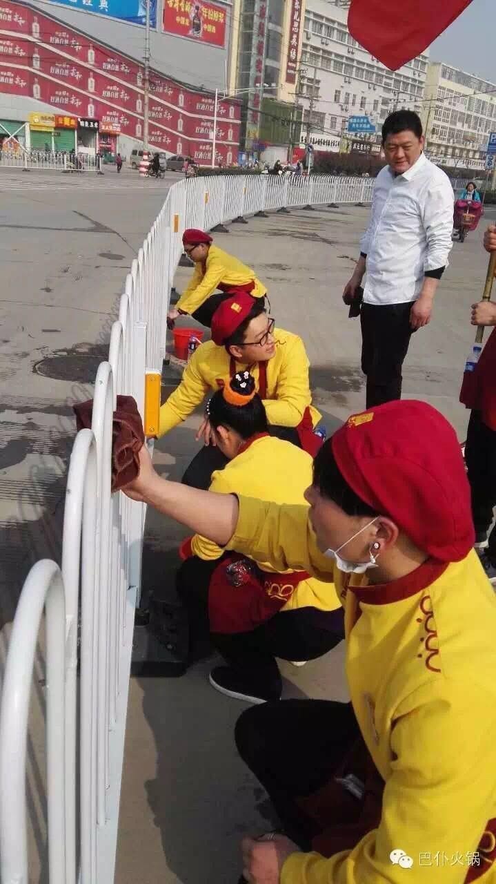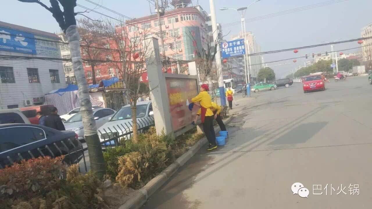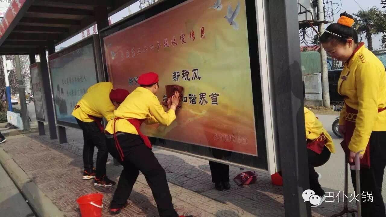 2016年3月16日,巴仆火锅组织各店员工在临泉、界首分别进行“让我们生活的城市更美丽”的公益活动。