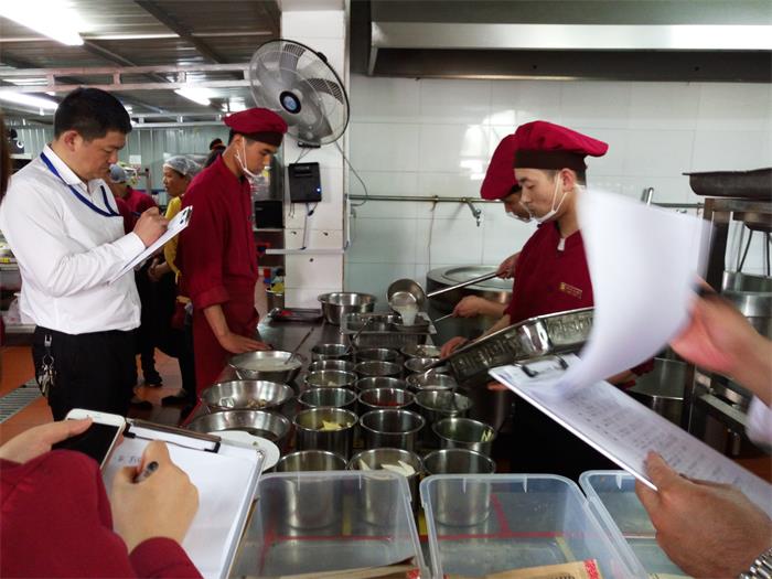 此次技能竞赛不同于第一届,这次竞赛前厅的参赛选手包含了所有岗位,主要是为考核各岗位员工对“两度”即“速度”“态度”的执行,同时各岗位之间的协作配合也在评分之列;各店厨房选出的参赛选手要求其三人配合完成厨房各岗位的工作,一个岗位完成后方可进行下一项,并且还有时间限制哦。。。这就非常考验选手之间的默契配合了。当然,为了打造一支优秀的团队,伙伴们也是拼了!