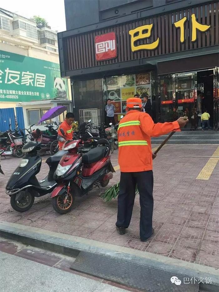 我们承诺以后巴仆火锅长期免费为环卫工人们提供热水,茶水,乌梅汤,冷饭加热等服务!我们愿意为他们的工作提供方便并坚持每月的公益活动,爱护环境从我做起!